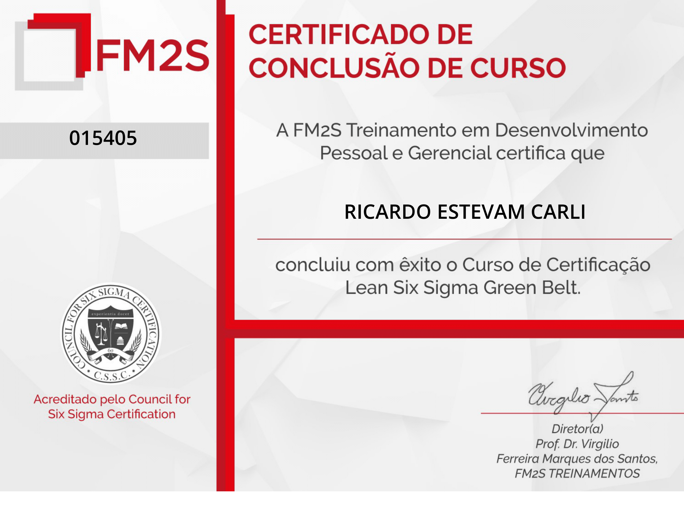The Green Belt Six Sigma equips professionals with intermediate-level skills to lead process improvement projects, using data-driven methods, and contributing to a culture of continuous improvement. The FM2S Certificate is internationally recognized by Council for Six Sigma.